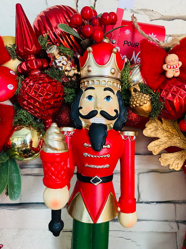 Élément central : un superbe Casse-Noisette, symbole intemporel de la féérie des fêtes