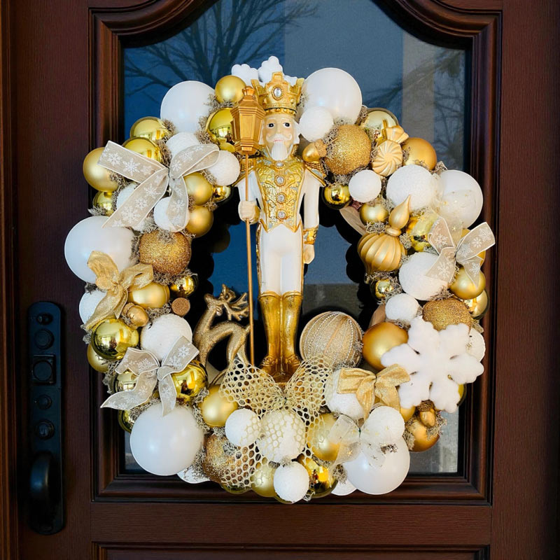Apportez la magie des fêtes à votre maison avec cette couronne de Noël vintage blanc et or, entièrement faite à la main.