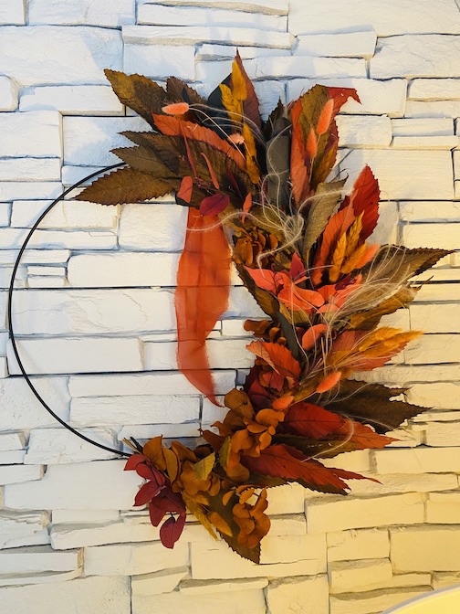 Couronne murale en eucalyptus stabilisé – Tons rouge, orange et brun (Ø 55 cm)