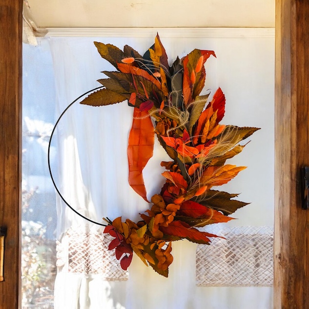 Apportez une touche naturelle et chaleureuse à votre intérieur avec cette couronne murale en eucalyptus stabilisé, aux teintes rouge, orange et jaune inspirées de l’automne. Réalisée à la main, chaque pièce est unique.