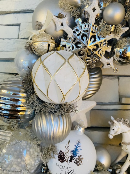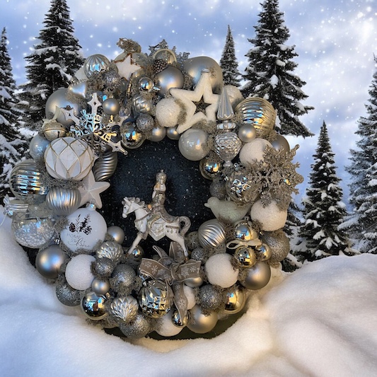 Apportez la magie des fêtes à votre maison avec cette couronne de Noël vintage blanc et argent, entièrement faite à la main.
